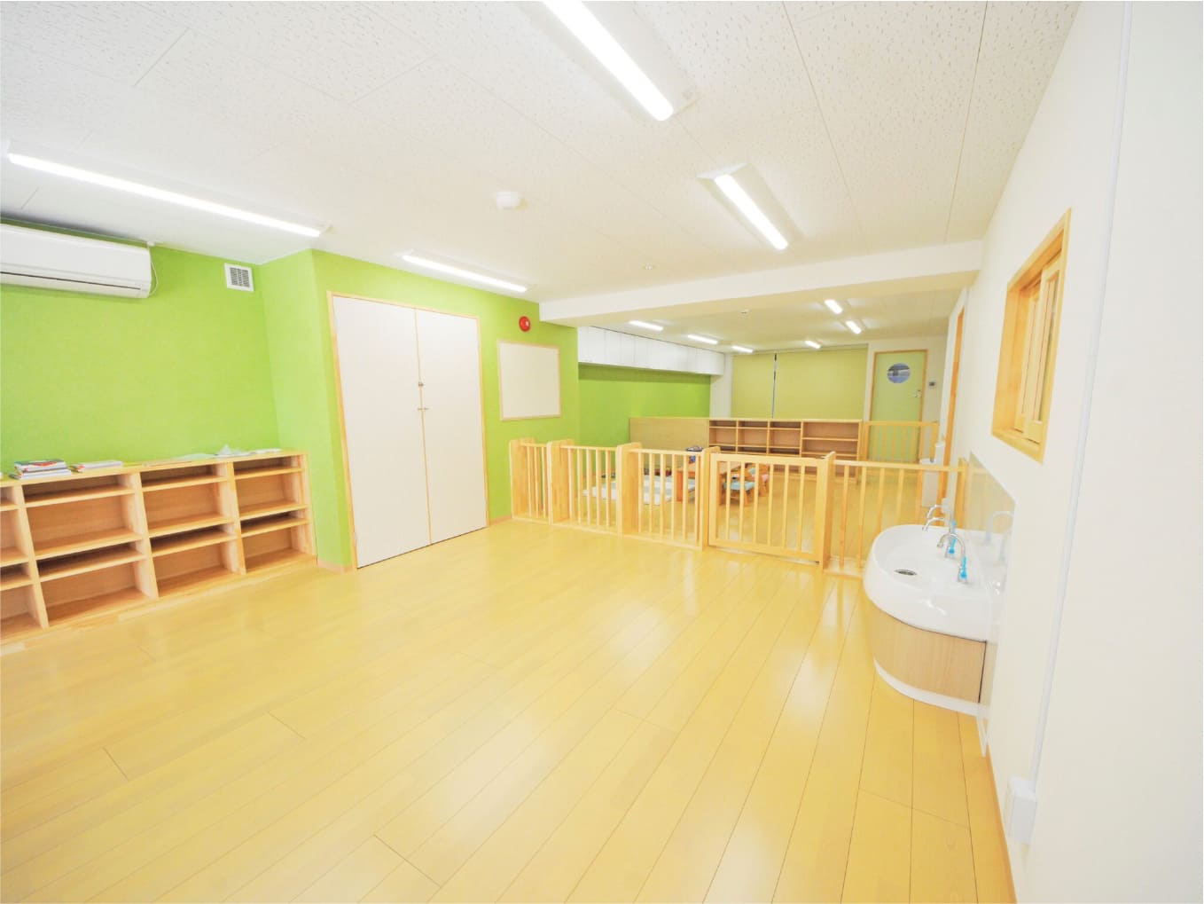 保育室で遊んだり、近くの公園へお散歩に行ったりします